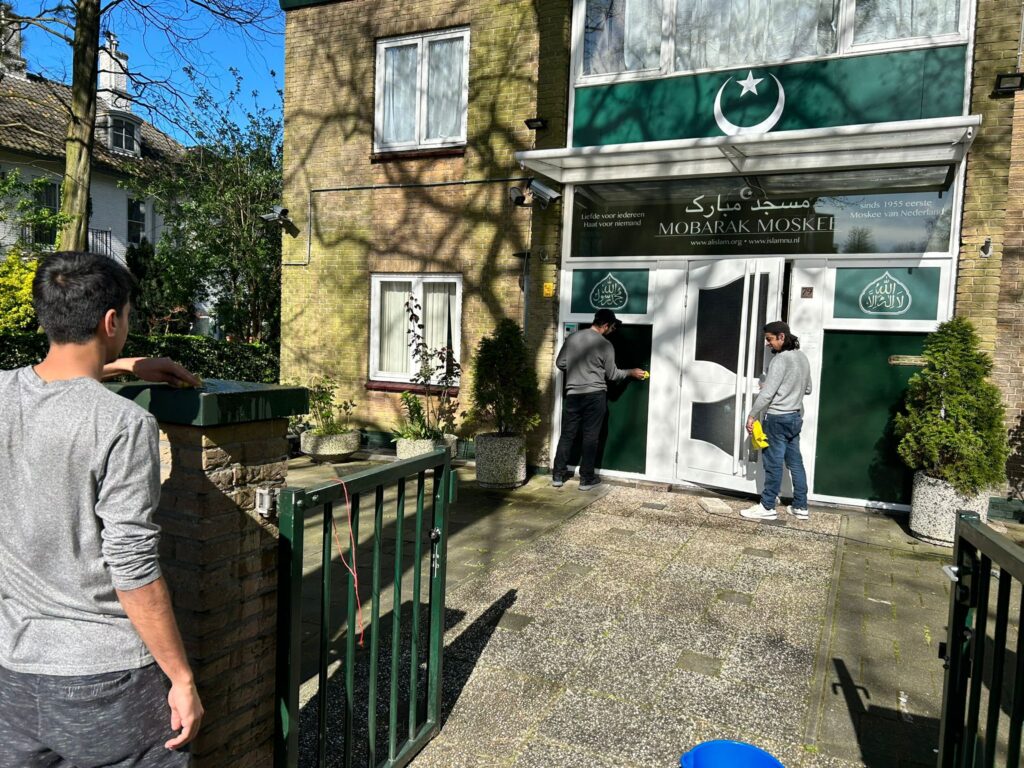 Op 7 april vond er een regionale Waqar-e-Amal plaats in de Mobarak Moskee, waarbij 13 Khuddam van onze majlis hebben deelgenomen en in totaal 5 uur hebben gewerkt. Deze waqar-e-amal omvatte verschillende taken, zoals het schoonmaken van tegels, ramen, daken en hekken met onder andere hogedruk spuit en schoonmaakmiddelen.